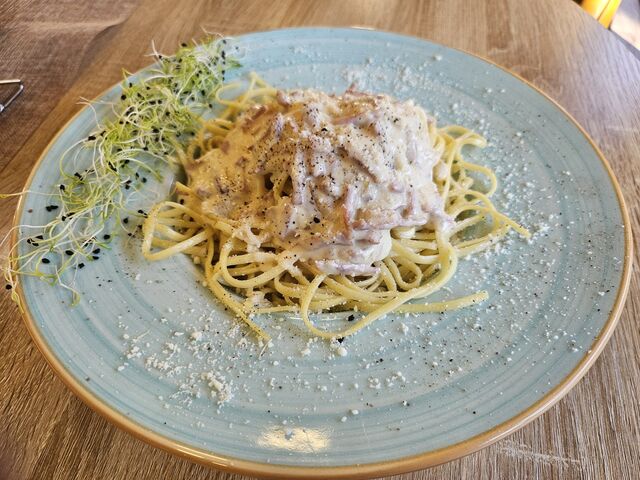 Nuestra oferta para llevar le permite disfrutar de nuestras comidas desde la comodidad de su hogar. Las instalaciones disponibles para usted incluyen servicio externo, aire acondicionado y Wifi gratuito. Hay un área separada disponible para fumadores. Para el pago puede elegir efectivo, Mastercard, VISA y tarjeta de débito. Contáctenos para reservar su mesa.